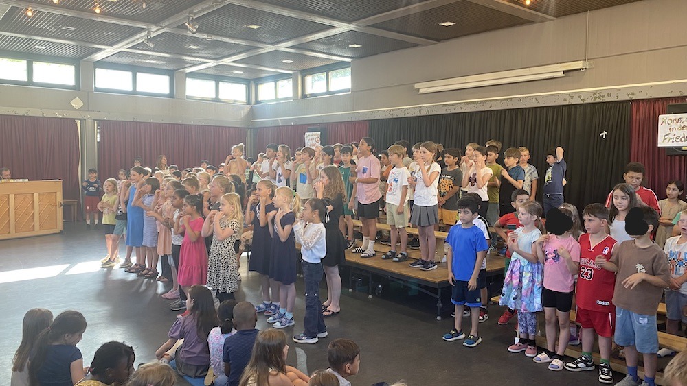 Im Rahmen der SingPause präsentierten die Schülerinnen und Schüler, welche Lieder sie im Laufe des Schuljahres gelernt hatten. Viele Eltern folgten der Einladung und ließen sich von einem abwechslungsreichen Konzert begeistern.