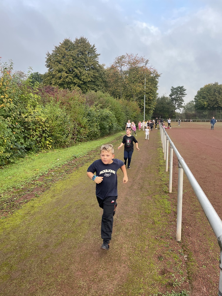 Danach ging es auf die 500-Meter-Bahn rund um den Sportplatz. Über eine Stunde lang drehten die Kinder hochmotiviert ihre Runden – viele davon mit erstaunlicher Ausdauer: Einige schafften sogar mehr als 10 Kilometer. Auch ein paar Lehrkräfte liefen mit Begeisterung mit. Sie hatten im Vorfeld selbst Sponsoren gefunden und zeigten sich von ihrer sportlichsten Seite.