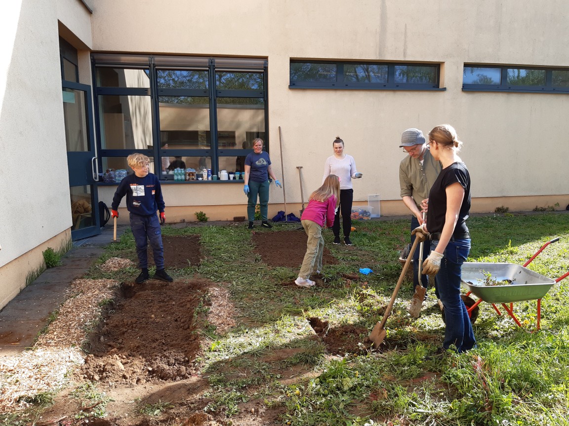 Zu Beginn der Ferien haben wir bei traumhaften Sonnenschein erneut viele helfende Hände von Eltern und Kindern bekommen.